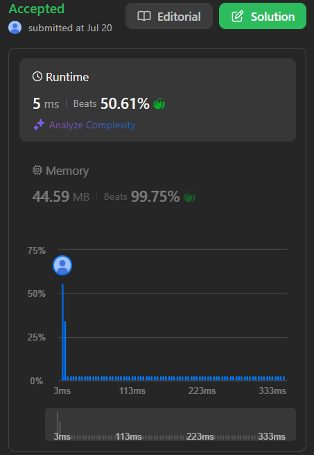 - 그럼 이제 결과를 리턴하면 끝 ! 시간 복잡도 O(n) 코드가 되는 겁니다