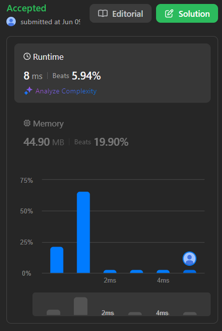 이 코드는 시간복잡도 면에서 더 개선되었습니다. Two Pointers 방식을 썼고요.