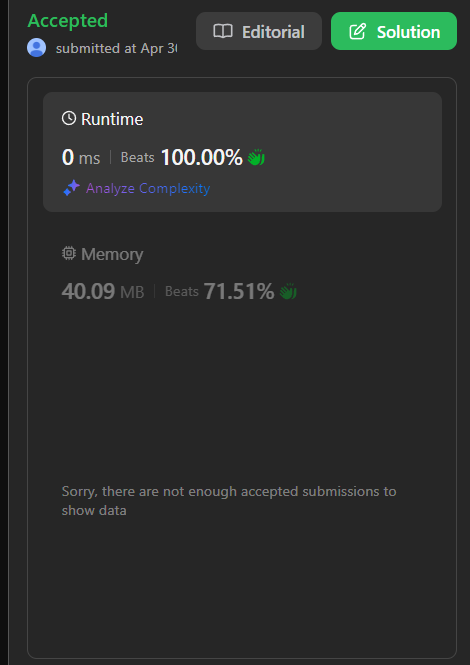 - O(n) : dp 배열을 사용하여 n+1개의 값을 저장하므로 공간 복잡도는 O(n)입니다.