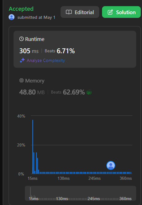 이렇게 해서 시간, 공간 복잡도가 모두 O(1) 인 이쁜 코드가 나옵니다.