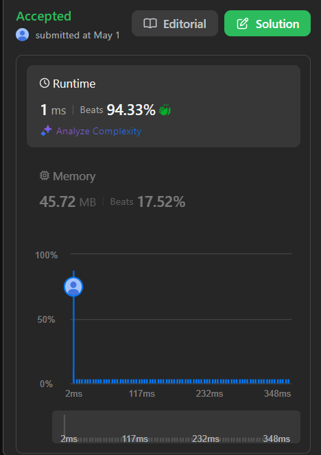 - 이후, 피벗 인덱스를 찾기 위해 배열을 한 번 더 순회하므로 O(n) 시간이 추가됩니다.