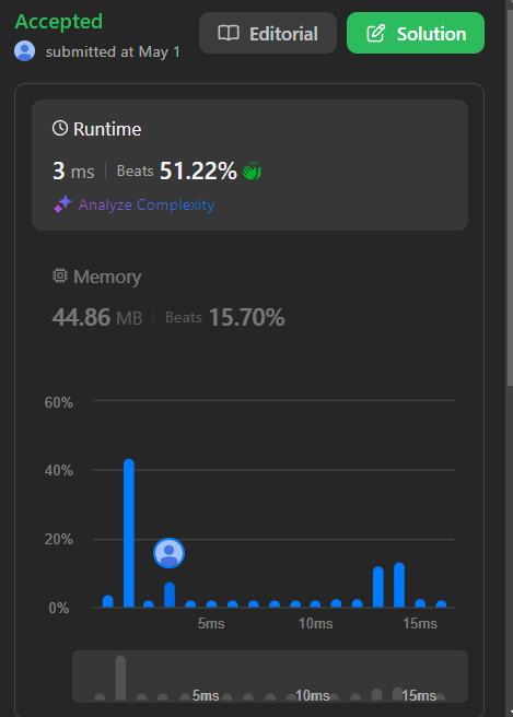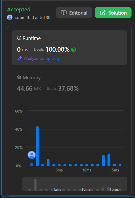 제 코드도 나름 심플하다고 생각했지만 생각보다 Runtime 결과가 좋지 못해서 다른 유저들 중 효과가 좋았던 코드를 하나 찾아서 공유해드리려고 합니다.