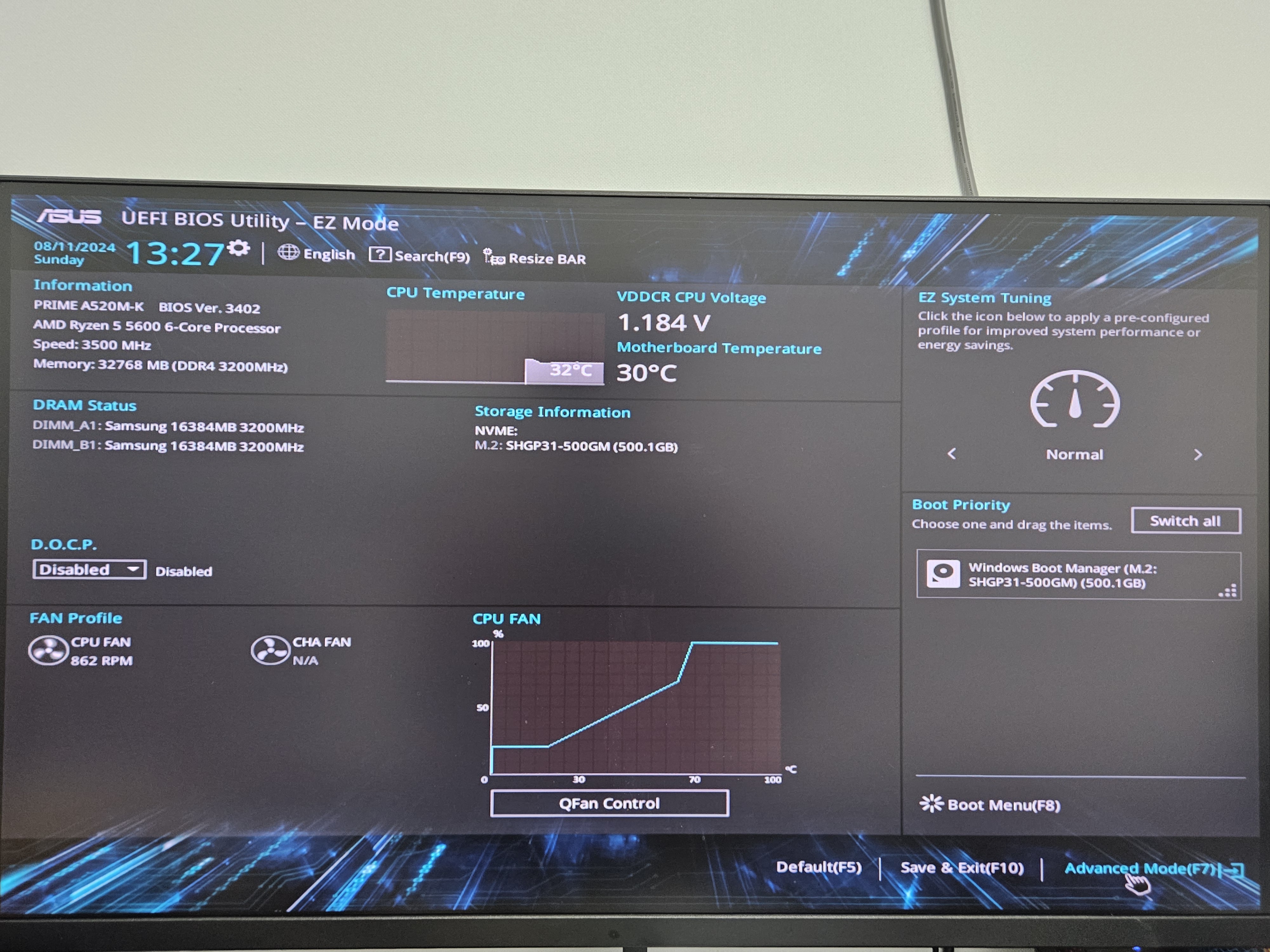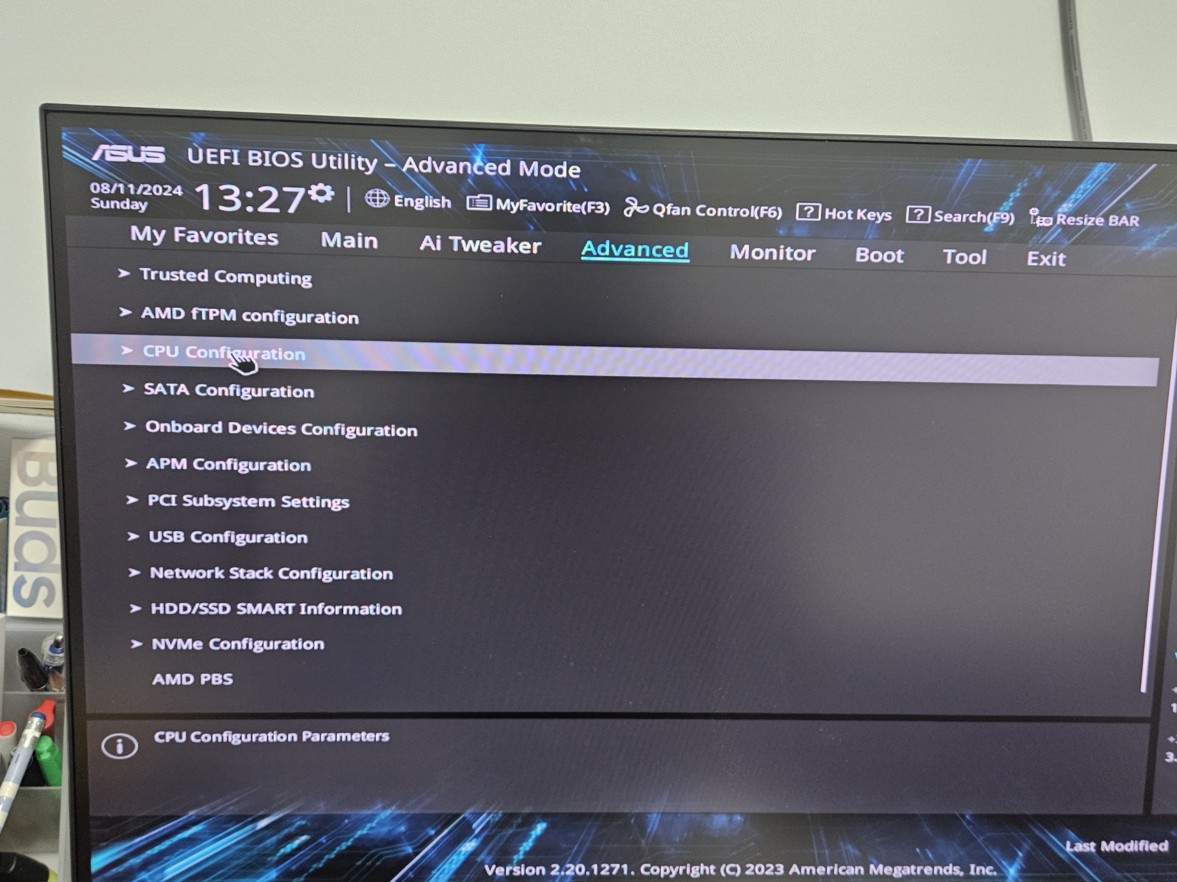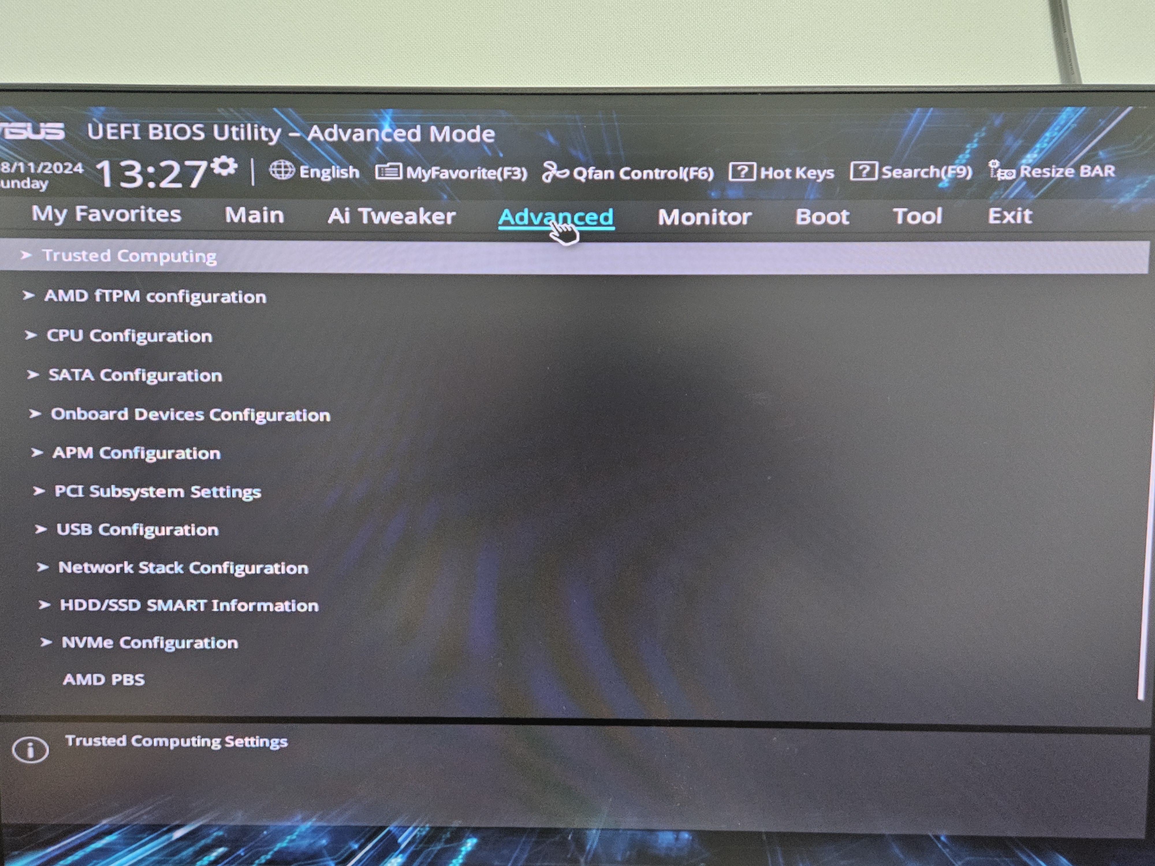 --> Advanced Mode > CPU Configuration > SVM Mode를 'Enabled' (활성화) 시킵니다